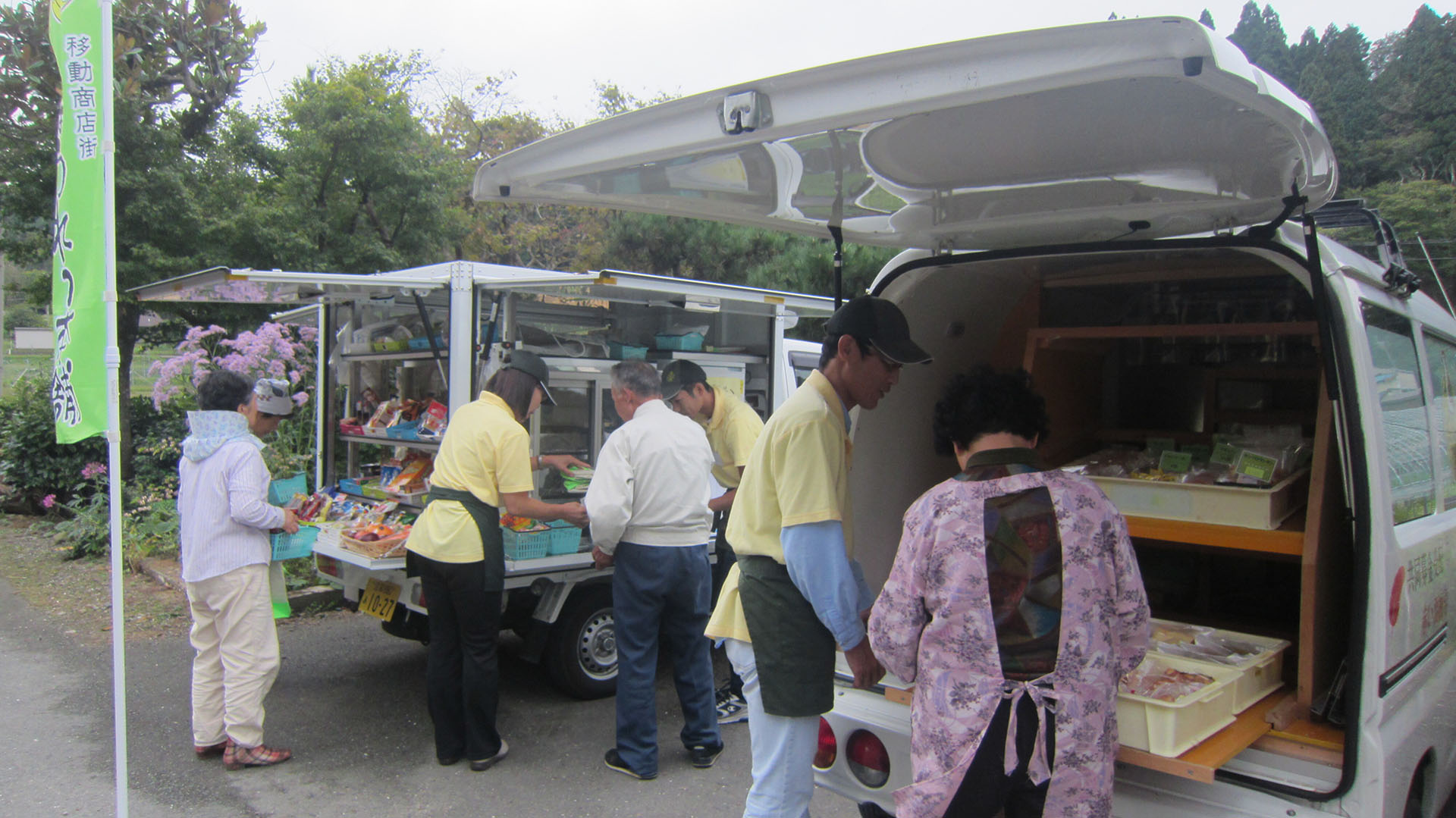 障がいがある方もない方も、ともに地域のなかで働き、暮らせる社会を目指して2011年に開始したのが、移動商店街「ぎょうれつ本舗」です。買い物が困難な山間部や過疎集落へ出向き、利用者さんがスタッフとなり、パンや焼き菓子、お惣菜などの食料品、日用品の販売を行いました。